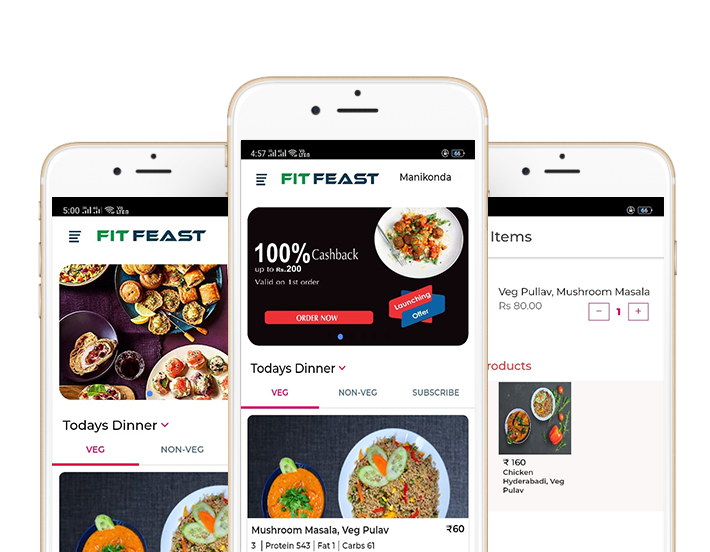 Fitfeast, healthy local food delivery app serving in and across hyderbad. Fitfeast Emphasize on Healthy diet food to stay healthy & happy. Users could order adhoc basis or subscribe for daily veg/non veg meal. This is an hybrid app, Developed using Ionic Angular.